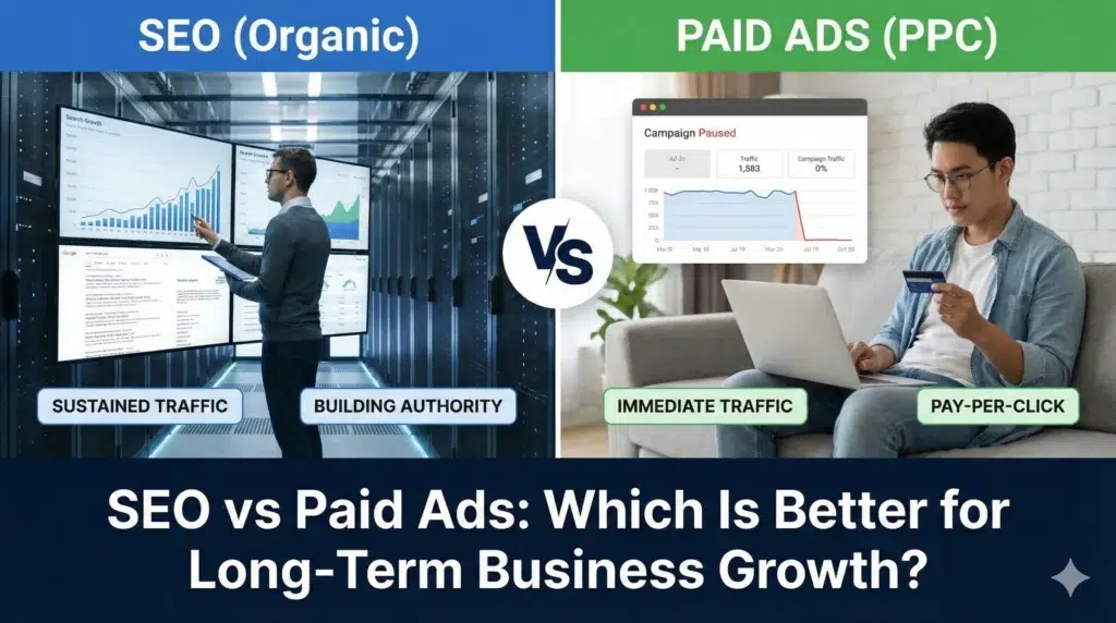 For sustained business growth, SEO provides superior long-term value. Your investment compounds over time, creating assets that continue producing results years later. You build brand authority, trust, and a traffic source that doesn’t disappear when budgets tighten.